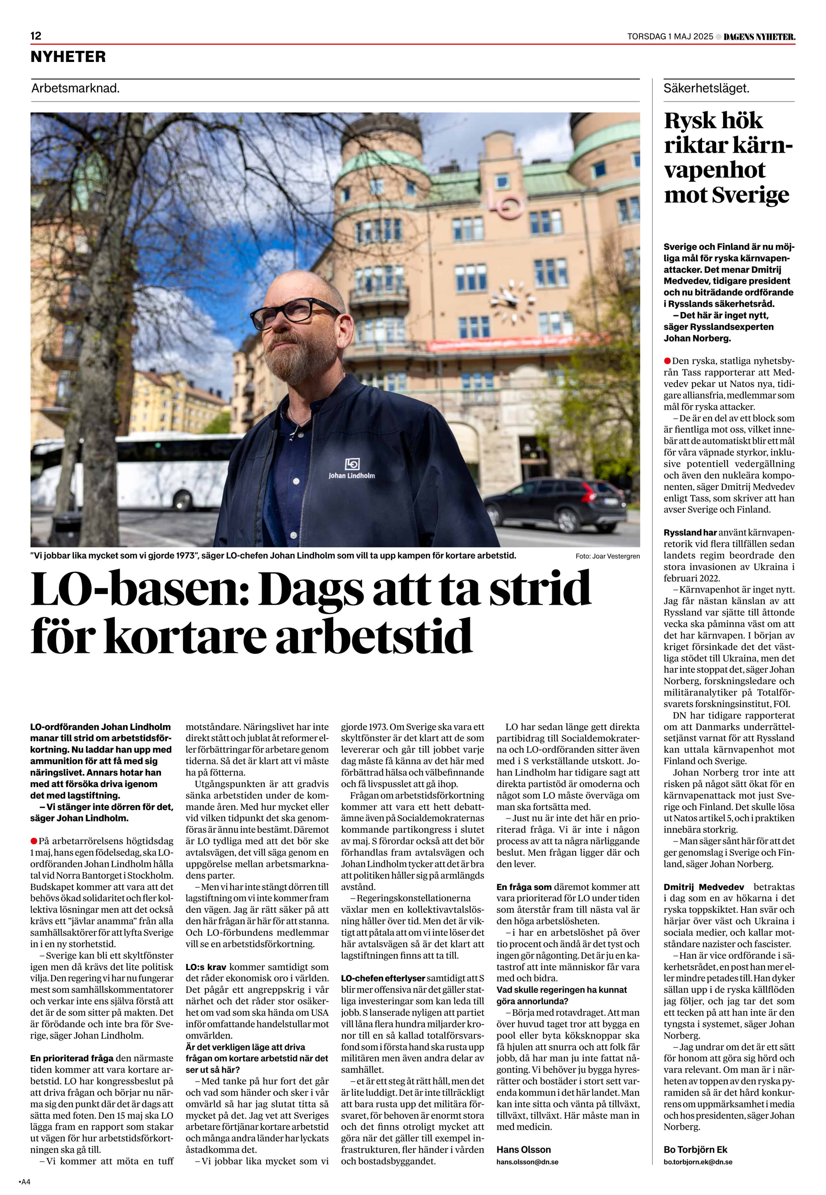 För Dagens Nyheter.